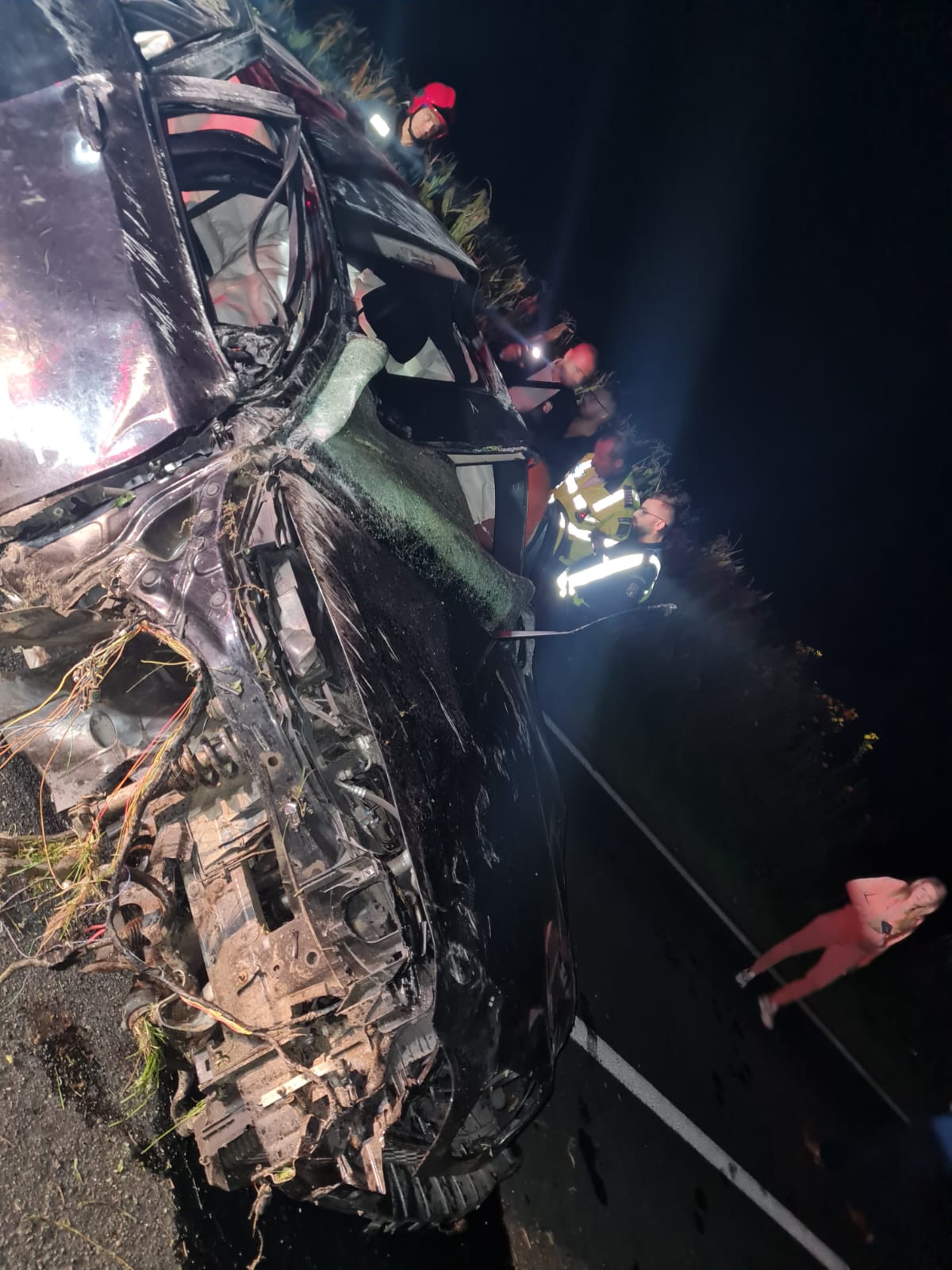 Accidentul a fost anunțat prin numărul unic de urgență 112, în jurul orei 05:00, fiind nevoie de intervenția pompierilor militari pentru descarcerarea uneia dintre victime.