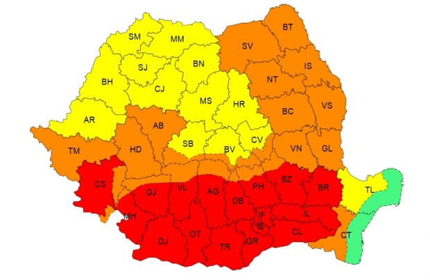 Autoritățile au transmis astăzi un mesaj RO-Alert de alertă extremă, avertizând populația cu privire la riscurile majore asociate valului de căldură persistentă. Conform meteorologilor, astăzi valul de căldură se va extinde și va continua să se intensifice, iar în județele Caraș-Severin, Mehedinți, Gorj, Dolj, Olt, Vâlcea, Argeș, Teleorman, Giurgiu, Dâmbovița, Prahova, Buzău, Brăila, Ialomița, Călărași, Ilfov și municipiul București se vor înregistra temperaturi maxime de 38…41 de grade. Disconfortul termic va fi deosebit de accentuat, iar indicele temperatură-umezeală (ITU) va depăși pragul critic de 80 de unități. Minimele termice vor fi de 21…24 de grade, astfel că vor caracteriza o noapte tropicală.