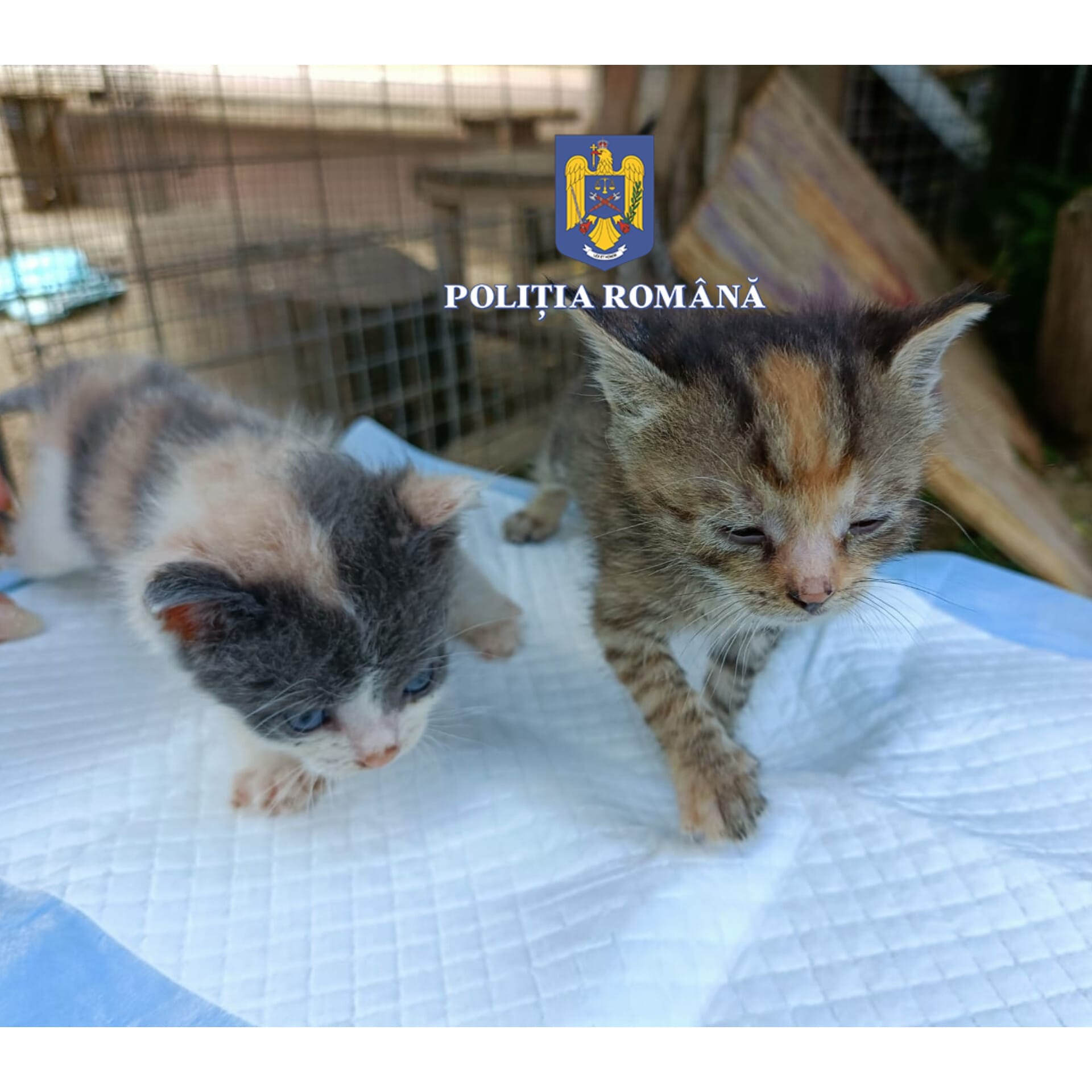 „La sfârșitul lunii mai, polițiștii de la Biroul pentru Protecția Animalelor Caraș-Severin au fost sesizați pe raza comunei Mehadia, în zona Iardașița, au fost găsiți 5 pui de pisică, foarte mici, abandonați lângă un container de gunoi.