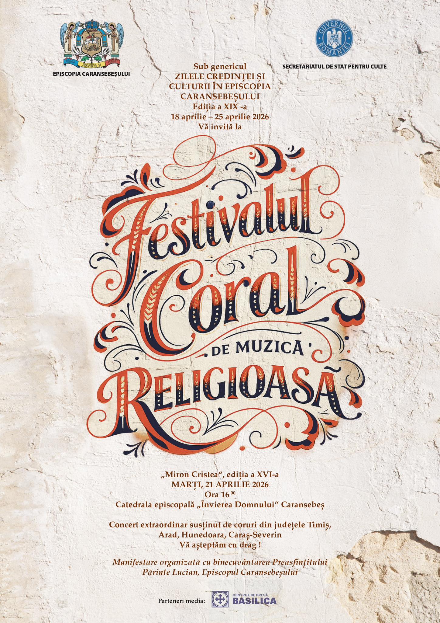 Manifestarea este organizată cu binecuvântarea Lucian Mic și sub egida Episcopia Caransebeșului, în colaborare cu Secretariatul de Stat pentru Culte. Partener media este Basilica.