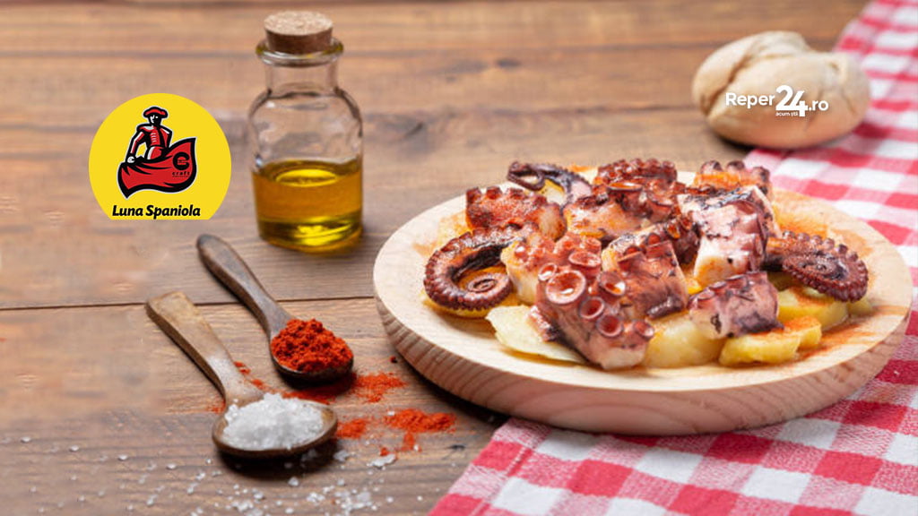 Pulpo a la Gallega rețeta spaniolă cu caracatiță. Se poate servi ca aperitiv sau fel principal, cu o salată verde sau cartofi fierți.