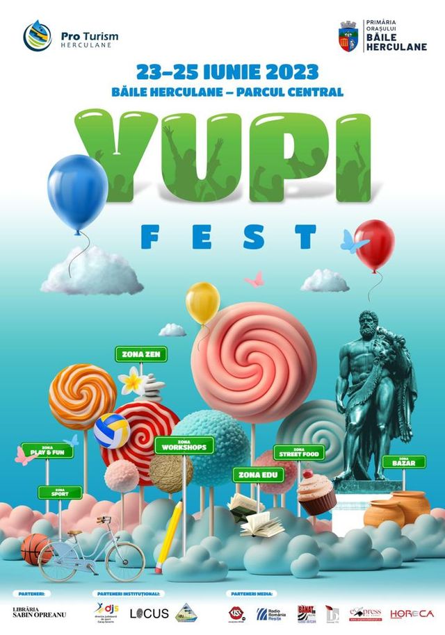 Asociația Pro Turism, în parteneriat cu Primăria Băile Herculane organizează Yupi Fest, un festival destinat familiilor, copiilor și tuturor celor care doresc să petreacă clipe minunate.