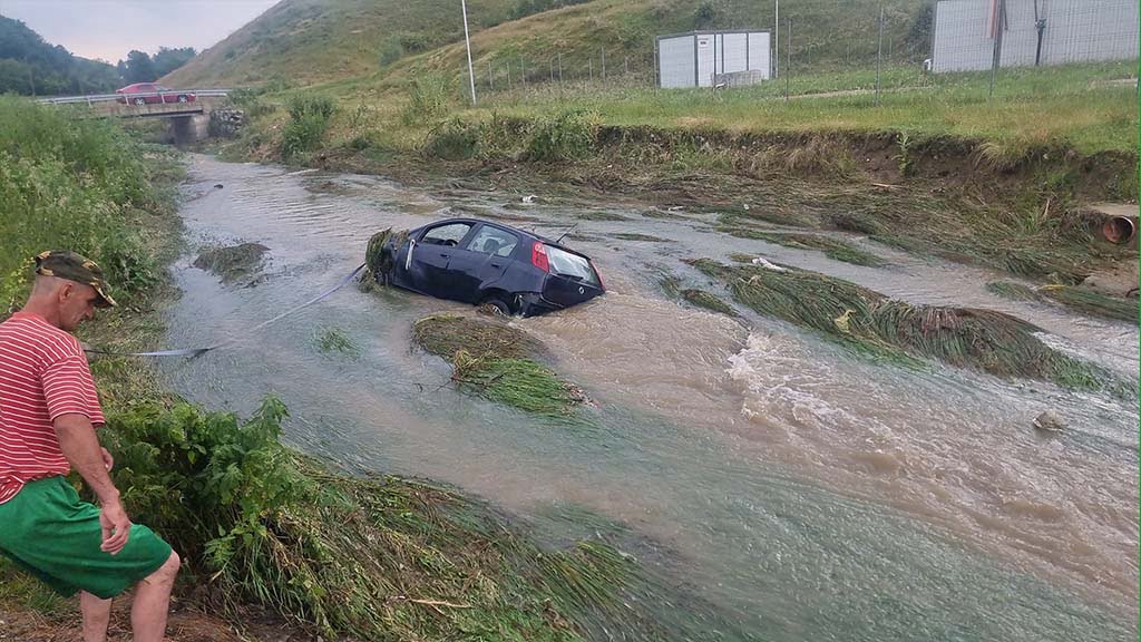 Nici la Târnova, comună situată în apropierea Reșiței lucrurile nu au stat mai bine. Ploile și grindina au condus la scurgeri de pe versanți, la apariția de tirente care au măturat totul în cale. O mașină a fost luată de ape precum o bărcuță de hârtie și târâtă în albia unui râu.