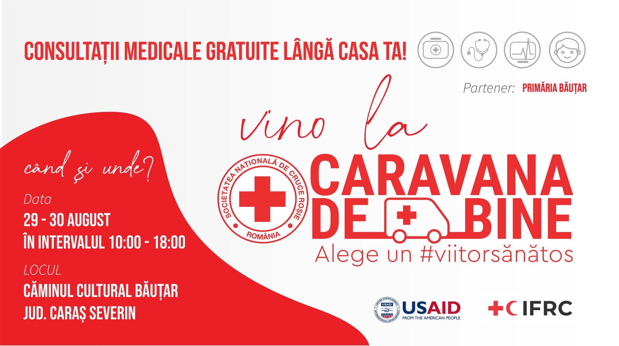 Caravana de bine a Crucii Roșii Române va poposi la finalul acestei luni în comuna cărășeană Băuțar. Timp de două zile, cetățenii din zonă vor putea beneficia de consultații medicale gratuite în cadrul unui proiect derulat la nivel național de Societatea Națională de Cruce Roșie.
