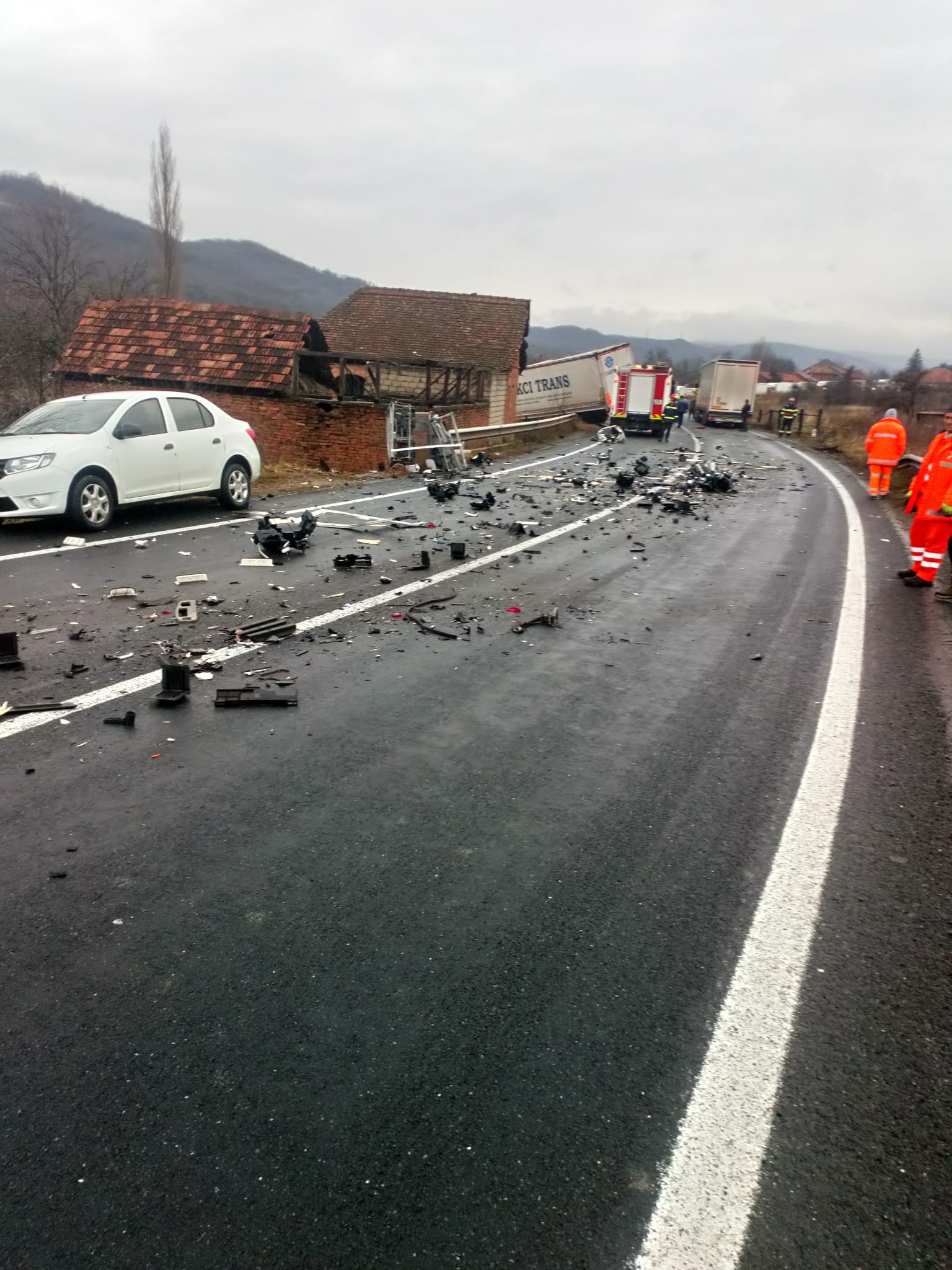 „Șoferul unuia dintre TIR-uri a fost extras de către echipajul de descarcerare al ISU Caraș-Severin și predat echipajului SAJ în vederea acordării de îngrijiri medicale și transport la Spitalul Municipal de Urgență Caransebeș”, precizează Anca Balint, purtător de cuvânt al Inspectoratului Județean pentru Situații de Urgență Semenic al județului Caraș-Severin.