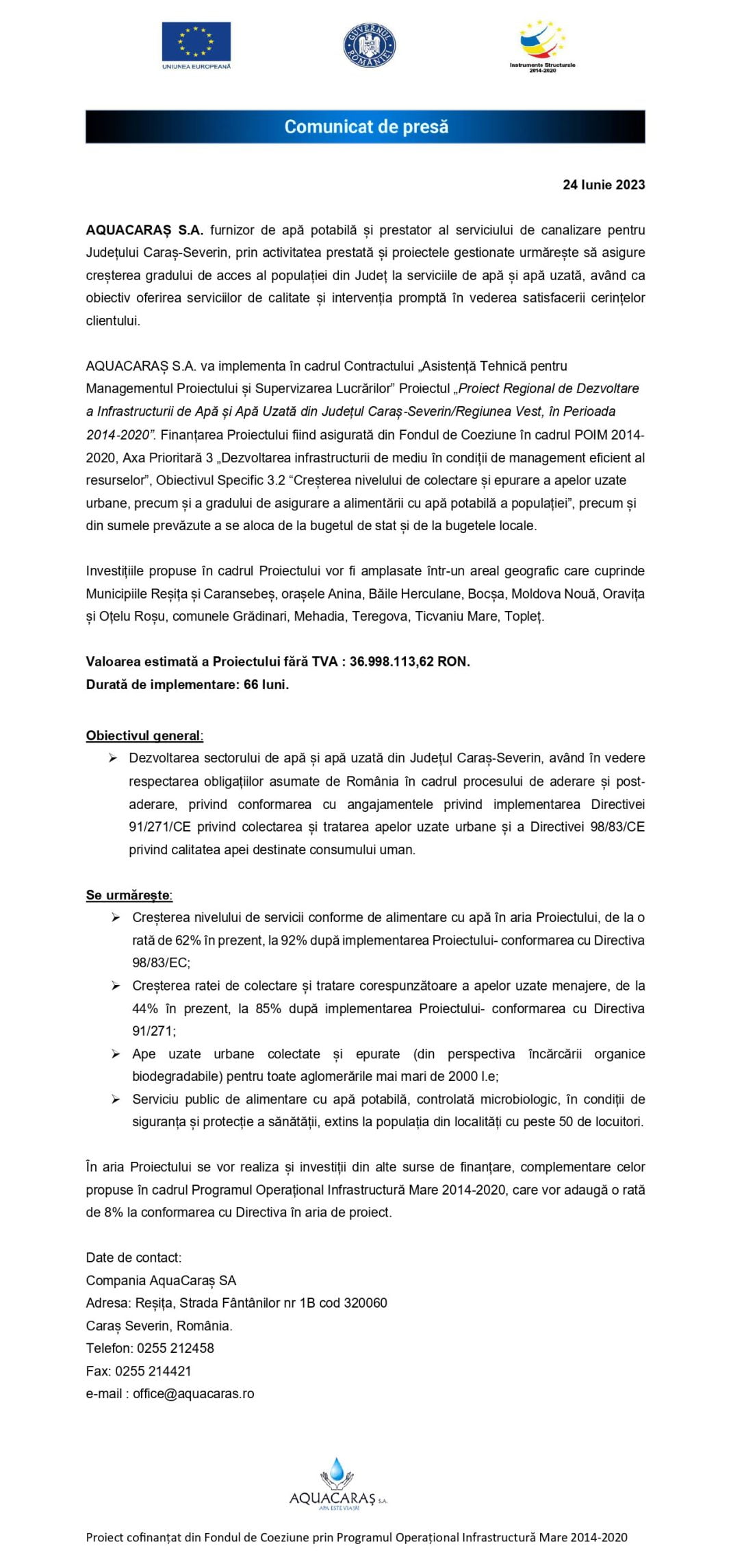 Anunțuri Comunicat de presă 26 iulie 2023 Acțiune FacebookWhatsAppEmailImprimare Acțiune FacebookWhatsAppEmailImprimare Articolul precedentFestival de muzică electronică pe malul lacului, la Ponton Casa Baraj!Articolul următor„Va lovi ca un bumerang economia României”! Creșterea fiscalității nu va aduce bani în plus la buget! Știrile zilei Economie de 600.000 de lei pe lună! 113 posturi dispar din organigrama Primăriei Reșița! „Ne ducem crucea singuri” 16 aprilie 2026 Silvia Mihalcea: „Economia României este împinsă în jos de decizii greșite” 16 aprilie 2026 Incendiu violent în Caraș-Severin! O cabană s-a făcut scrum, iar focul s-a extins la un autoturism 16 aprilie 2026