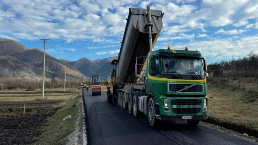 Condițiile meteo favorabile din zilele anterioare au permis constructorului să continue lucrările de modernizare a drumului județean DJ 608 – Plugova – Globurău – Costiş – Borugi – Cornereva – Obiţa – Rusca (DN6).