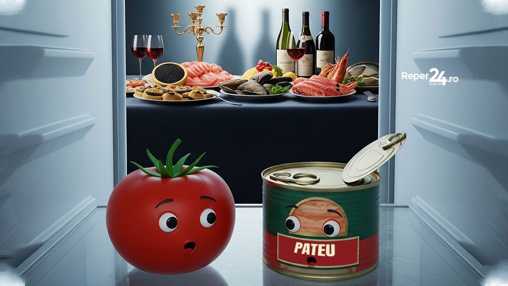 Dar, stați puțin! În timp ce lumea deplânge sfârșitul ospățului cotidian, două suflete simple din fundul frigiderului încep să freamăte de bucurie: roșia îmbujorată de modestie și pateul de ficat, mereu acolo, tăcut și fidel.