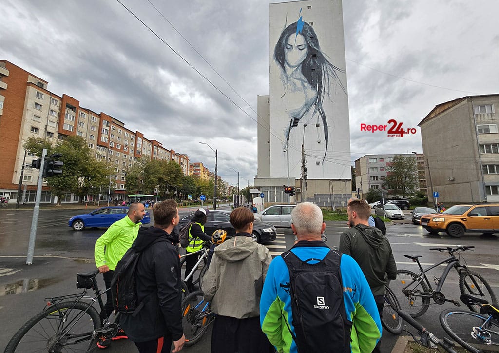 Conform orei stabilite, grupul de vecini și apropiați ai acestora, au pornit din cartierul Govândari, chiar din fața parcării Kaufland, într-un tur de biciclete ghidat de către Alina Saftulescu, care ne-a vorbit despre picturile murale din oraș dar și despre ceea ce și-au dorit autorii acestora.