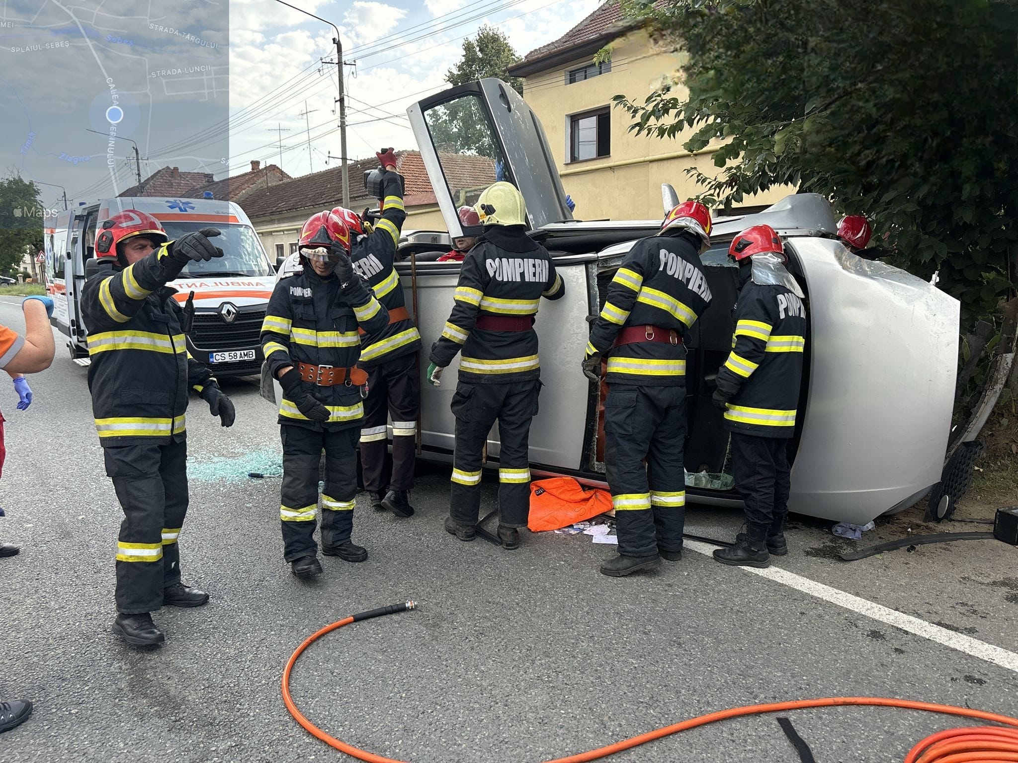 Cel de-al doilea accident s-a produs în municipiul Caransebeș, fiind nevoie de intervenția pompierilor pentru descarcerarea a două persoane. În accident a fost implicat un singur autovehicul, transmite reprezentantul ISU Semenic: