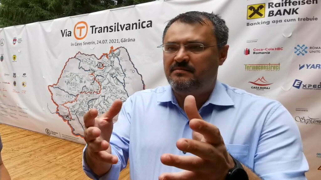 „Mă chinui de mulți ani să punem România pe hărțile turistice Euro Velo. Sunt două trasee dedicate bicicliștilor care ar trebui să treacă prin România, pe care țara noastră și le-a asumat în fața Uniunii Europene și pe care nu le-am făcut, noi statul român. Pur și simplu n-am fost în stare, din diverse motive (n.n. ministrul Ghinea nu intră în jocurile politice). Acum avem în PNRR, în Planul de Reconstrucție prinși banii pentru Euro Velo 6, care intră în țară odată cu Dunărea (Baziaș) și se termină la Tulcea. Iată că acești oameni minunați și entuziaști frații Ușeriu, au reușit să facă de capul lor un traseu care nu este Euro Velo dar care se îmbină foarte bine cu Euro Velo, cel care face legătura Atlantic – Marea Neagră. Deci oamenii vor parcurge de la Putna, prin Banat și până la Severin traseul pe biciclete și vor continua de-a lungul Dunării, până la revărsare. Practic, prin aceste trasee se unește România prin aceste trasee de biciclete iar asta înseamnă că românii nu mai pleacă neapărat să facă trasee în alte țări, pentru că vor avea aceste opțiuni, vor sta pe traseu, vor face efort fizic, mănâncă și consumă astfel bani la pensiunile de pe traseu și creștem valoarea adăugată a turismului românesc. Acesta a fost scopul pentru care ne-am bătut cu Uniunea Europeană să accepte această investiție în planul PNRR și este acceptată. Deci vom avea 1000 de km prin Via Transilvanica, pe care îi vom updata cu macadam, tot prin PNRR, pentru că în acest moment aici avem un drum de poteci, pietriș, noroi iar noi vom pune macadam astfel încât să poată fi folosit 8 luni pe an“, a explicat ministrul investițiilor și proiectelor europene, Cristian Ghinea.