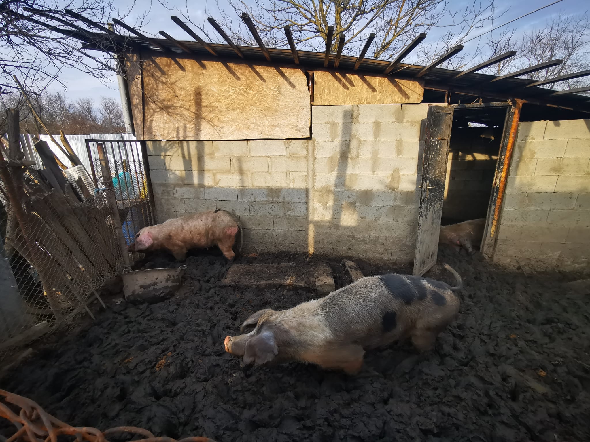 Fapte dovedite cu prima poză (etologică) unde câinele este legat în lanț iar porcii sunt liberi, în loc să fie zonal-tradițional invers.