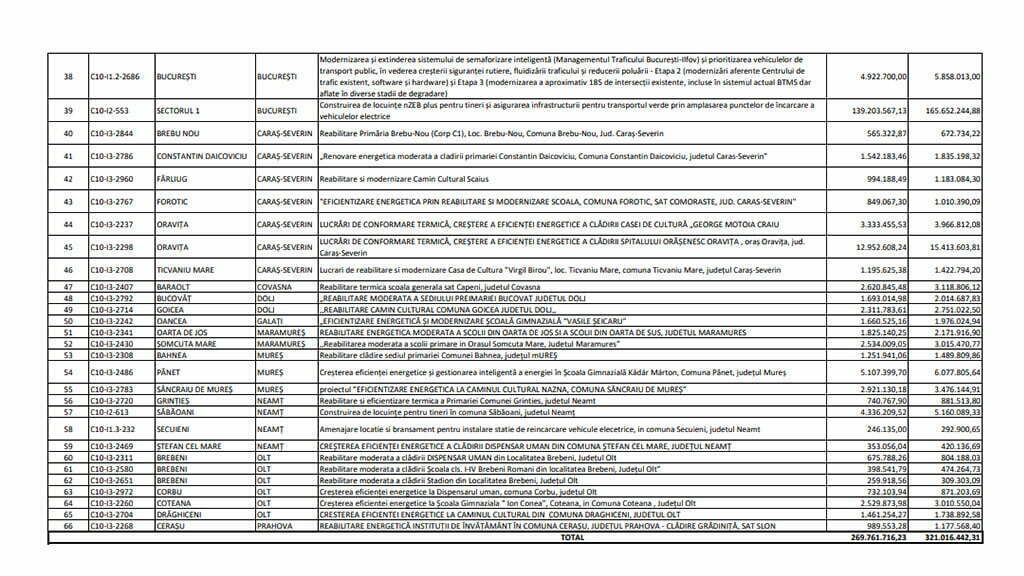 Zilele trecute, în cadrul Planului Național de Redresare și Reziliență – Componenta Fondul local, Ministerul Dezvoltării, Lucrărilor Publice şi Administraţiei a aprobat 66 de noi proiecte de investiții depuse spre finanțare de 53 de unități administrativ-teritoriale din țară.
