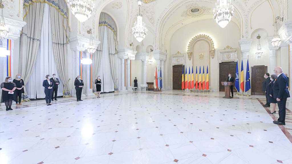 „Se cuvine ca acum să acordăm recunoștința noastră celor care prin sacrificiul lor au grijă de sănătatea și viața noastră. Sunt aproape 2 ani de când cursul normal al existenței noastre cotidiene a fost perturbat dramatic ca urmare a pandemiei de COVID-19. Se află printre noi oameni care zi de zi au îndurat noi teste de rezistență și de adaptabilitate”, a declarat Klaus Iohannis după înmânarea distincțiilor.