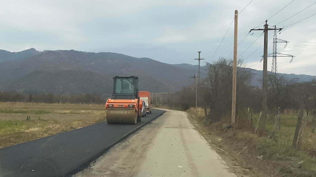 Profitând de vremea bună, constructorii lucrează de zor la asfaltarea drumului comunal DC24 ce face legătura între Armeniș și Feneș.