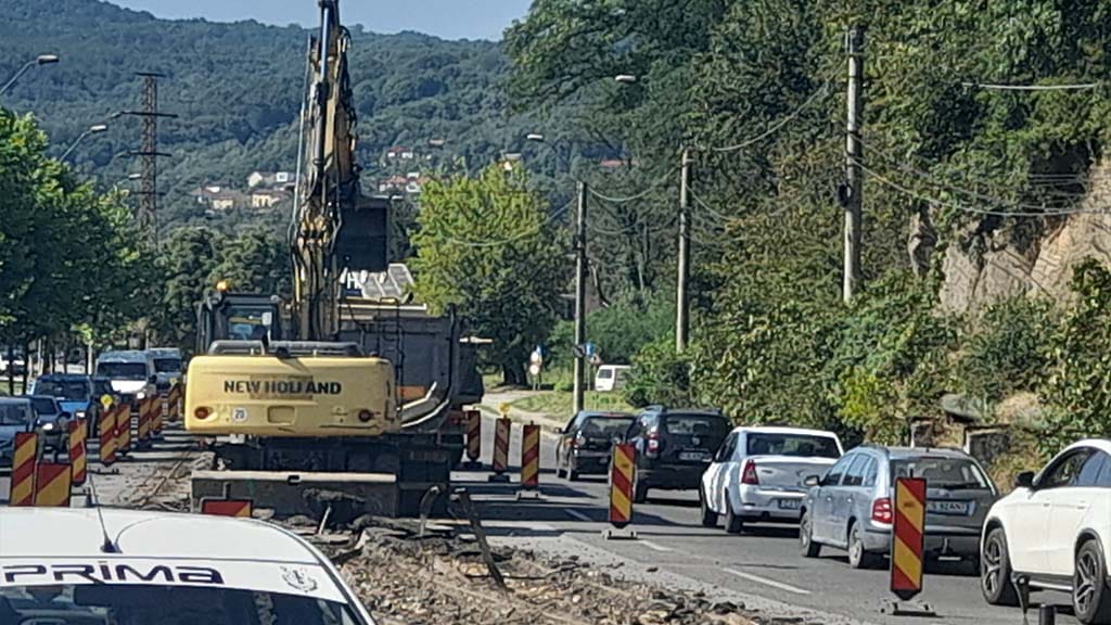 Continui pe traseul Intim – Victoria. Se sparge betonul, mecanizat cu utilaje mari, se înlătură șina, se sapă până la adâncimea prevăzută în proiect, se introduce tubulatura pentru evacuarea apelor pluviale într-un înveliș de piatră și un fel de pânză cu proprietăți impermeabile. Peste, se așterne din nou pietriș cu nisip, se tasează și se întinde aceeași pânză impermeabilă „asezonată“ cu un fel de armătură pentru rigidizare. Mai e mult până departe aș spune, sau mai bine zis lucrul în acest sector este abia la început.