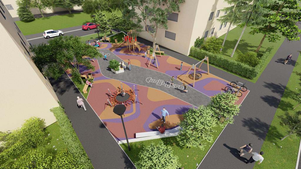 Pe o suprafață de 400 de metri pătrați au fost amplasate: leagăne duble, un ansamblu de cățărare, un leagăn de grup, un complex de joacă cu tobogane și o trambulină. Pe aleile noului loc de joacă sunt amplasate mobilier urban: bănci, coșuri de gunoi și a fost refăcut și sistemul de iluminare din zonă.