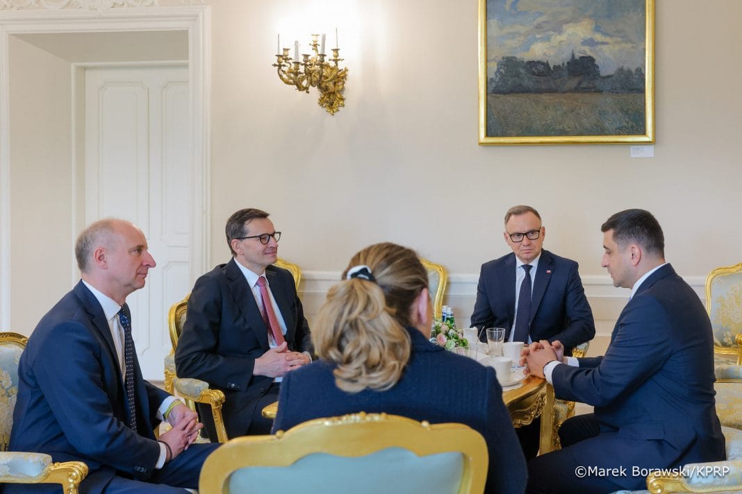 În Polonia, Simion a fost primit de președintele Poloniei, Andrzej Duda, la Palatul Prezidențial din Varșovia. Întâlnirea a avut ca teme centrale reinstaurarea democrației, într-un context dificil pentru România, colaborarea economică bilaterală, Inițiativa celor Trei Mări, precum și potențialul strategic și economic al României în regiune.