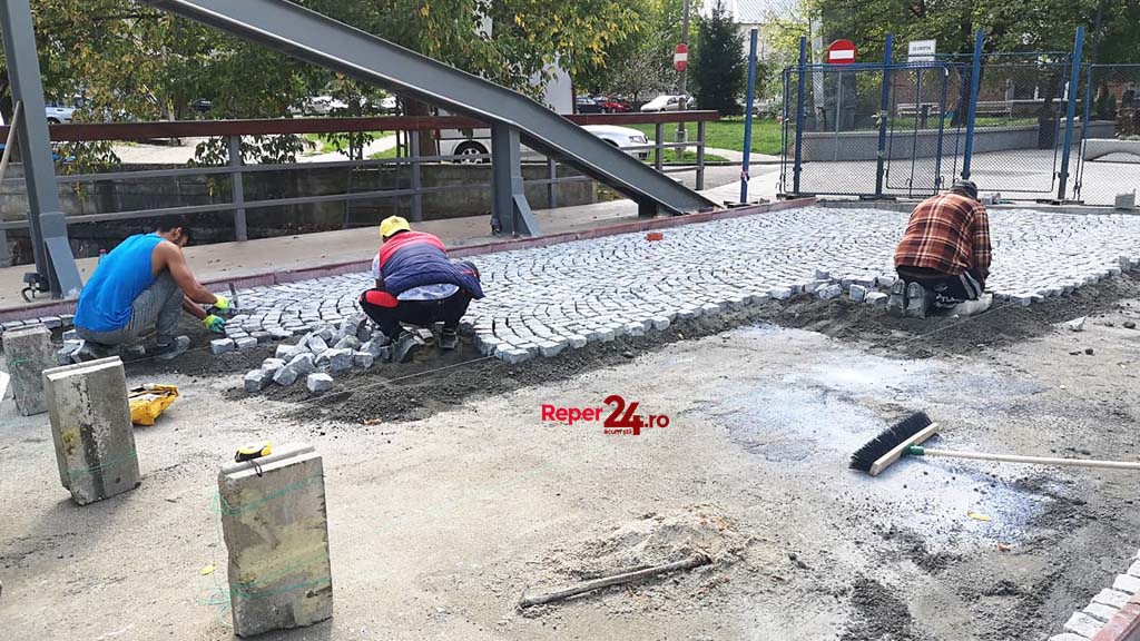 Într-un final, lucrările par să fi intrat pe ultima sută de metri și se lucrează la pavarea podului cu piatră cubică, așa cum anunța în urma cu câteva luni edilul reșițean.