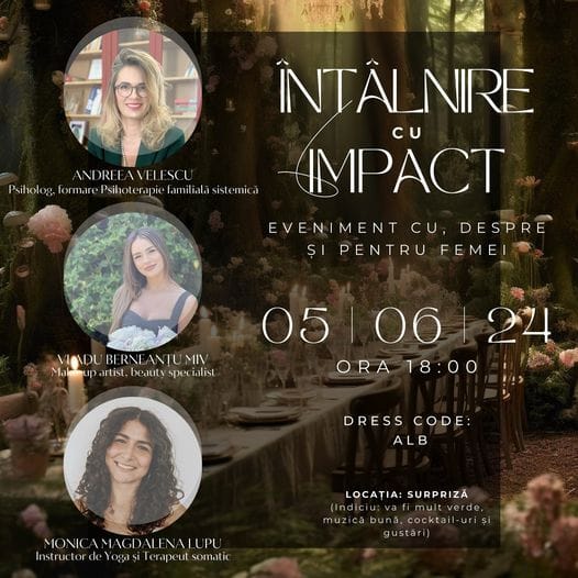 „Va fi o seară plină de spiritualitate, conexiune cu energia feminină și, desigur, socializare, muzică ambientală și gustări delicioase într-o grădină de vară. De data aceasta vom avea o locație surpriză, un cocktail party și 3 invitate minunate de la care vom pleca acasă cu multe informații interesante”, este promisiunea făcută de inițiatoarea proiectului, președinta Asociației „Cuib de vise” din municipiu, Adina Pasere.