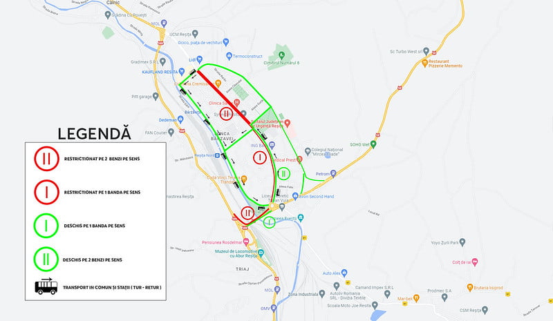 Primăria Reșița anunță că extinderea pe un nou tronson a lucrărilor de modernizare a transportului public electric efectuat cu tramvaiul de către PORR pe B-dul Republicii, în cadrul primei etape care se desfășoară pentru o perioadă de 6 luni, face ca începând cu data 27.06.2022 orele 09:00 și până la finalizarea sectorului de drum, să se închidă/restricționeze temporar circulația autovehiculelor, astfel: