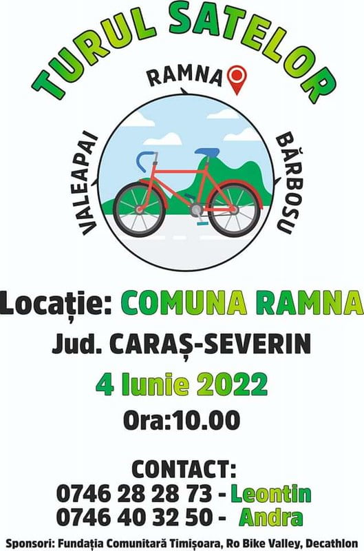 Mâine, comuna Ramna găzduiește un frumos eveniment prin care se dorește promovarea satelor din comună, cu farmecul lor natural caracterizat prin păduri, locuri și oameni frumoși, case tradiționale, monumente istorice, lăcașuri de cult, tradiții și obiceiuri, toate bifate printr-o plimbare cu mijlocul de transport cel mai prietenos cu natura- bicicleta.