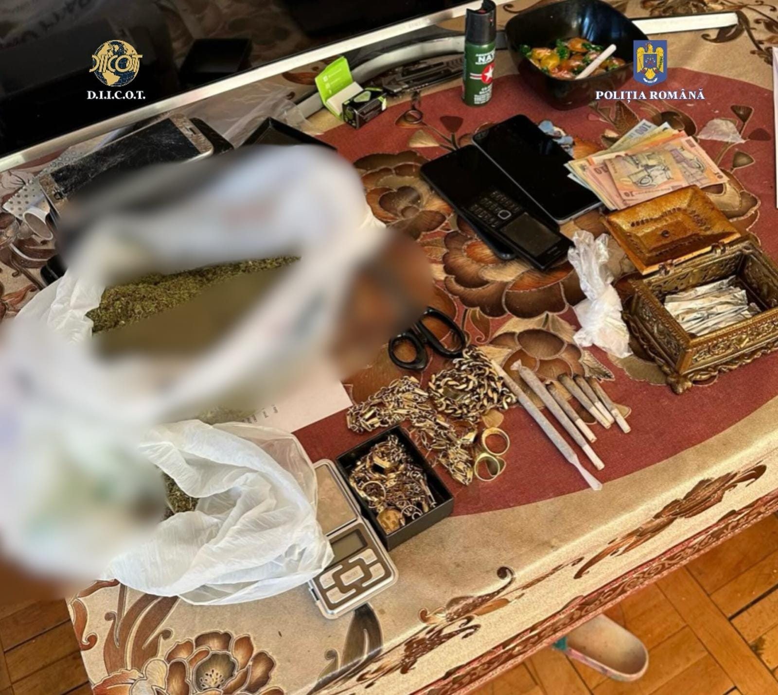 În urma celor 23 de percheziții domiciliare, au fost descoperite și ridicate aproximativ 400 de grame de substanță cu efect psihoactiv, 80 de grame de canabis, 5 grame de cocaină, 5 grame de ciuperci uscate susceptibile de a produce efecte halucinogene, 10 grame de substanță cristalină, sub formă solidă, 6 cântare electronice, 5 dispozitive de mărunțire de tip grinder, peste 10.000 de euro și peste 25.000 de lei, telefoane mobile, o armă neletală supusă autorizării, deținută fără drept, peste 150 de grame de bijuterii, precum și alte probe și mijloace materiale de probă.