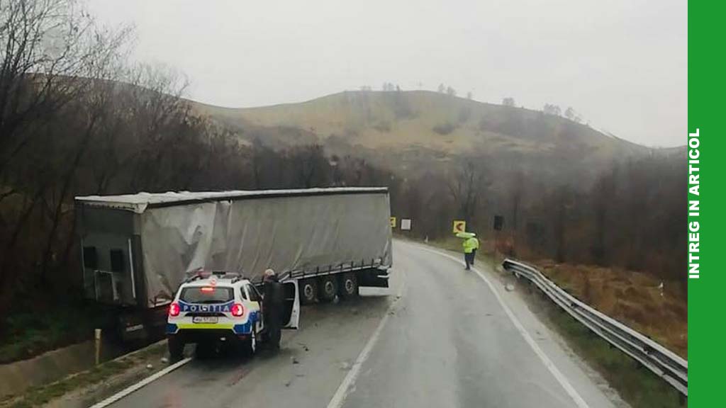 ”Din cauza neadaptării vitezei la condițiile de trafic, într-o curbă, un autotren a ieșit în decor, iar remorca a rămas pe partea carosabilă.”