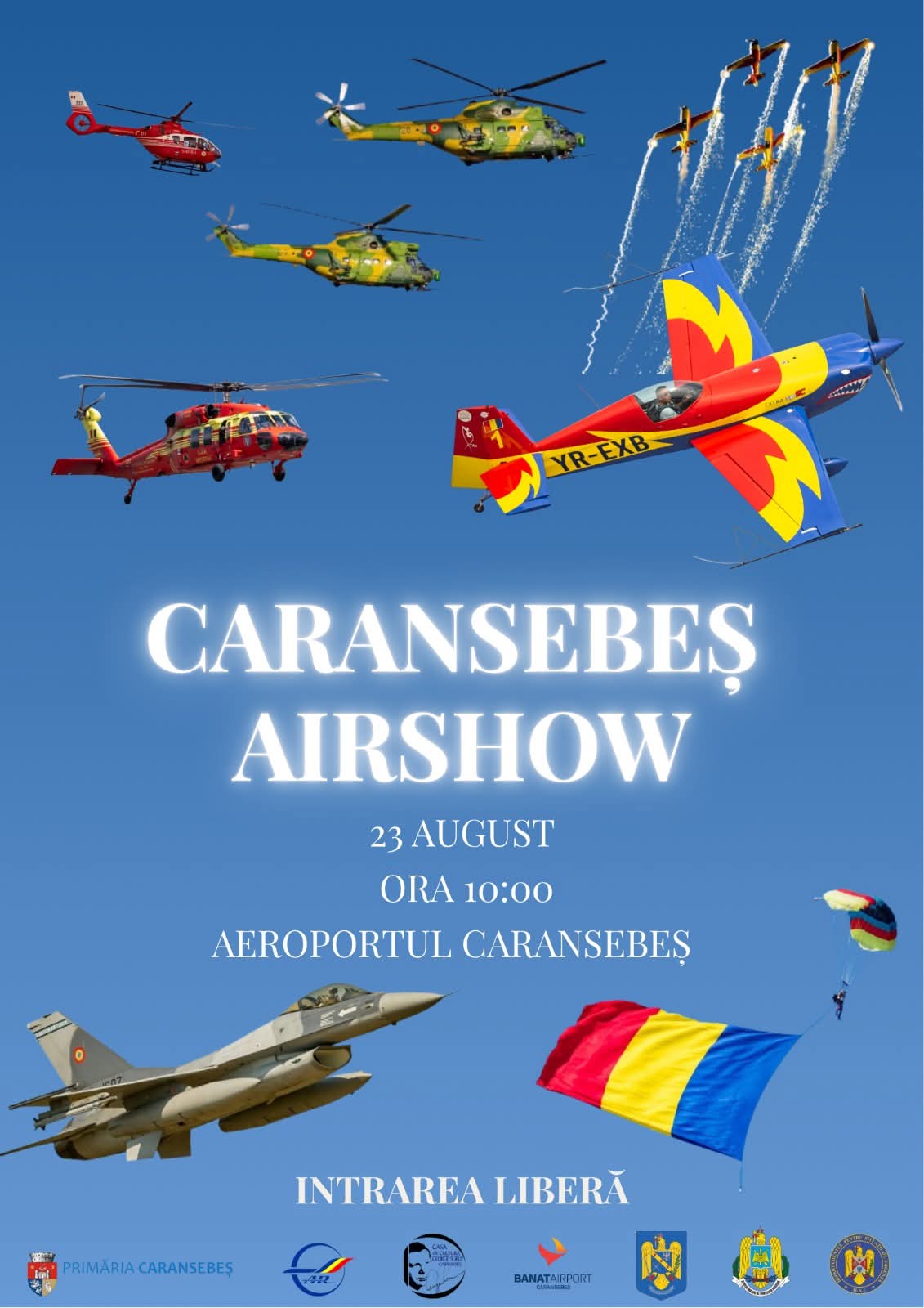 Accesul publicului este gratuit, începând cu ora 09:00, iar Primăria Caransebeș îi invită pe toți cei pasionați de aviație, de adrenalină și de spectacol să participe la o zi care va rămâne în istoria orașului.
