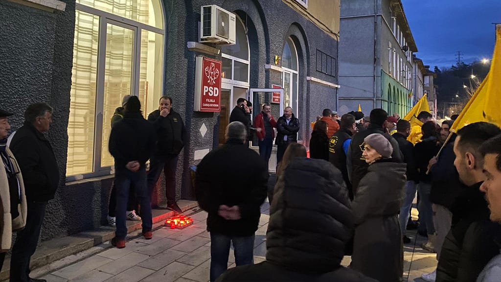 Un protest spontan al organizației AUR Caraș-Severin a avut loc aseară în fața sediului PSD Caraș-Severin din municipiul Reșița.