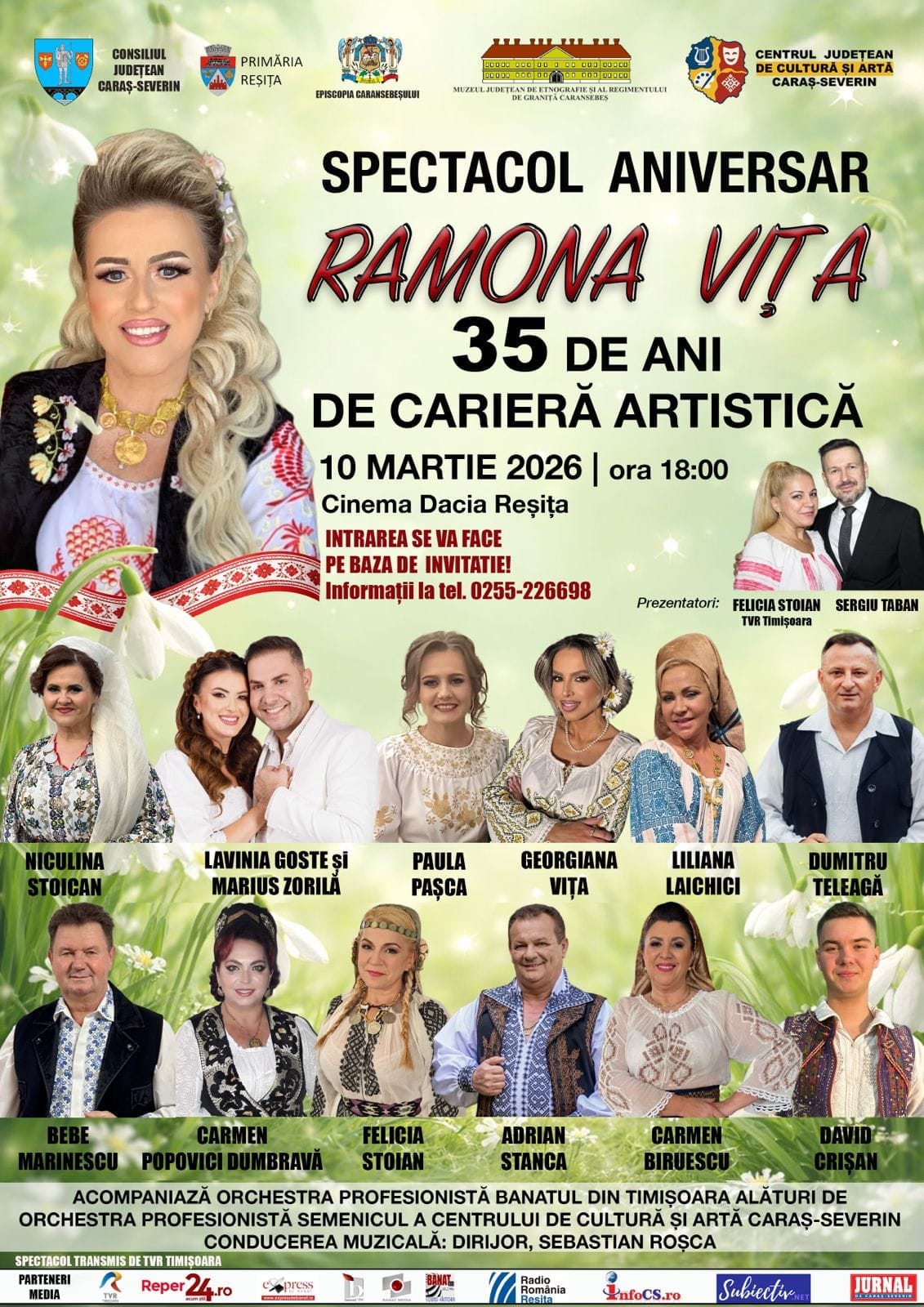 Un eveniment aniversar dedicat uneia dintre cele mai remarcabile voci ale folclorului bănățean, Ramona Vița, la 35 de ani de creație artistică, va avea loc luni, 9, și marți, 10 martie, la Caransebeș și Reșița.