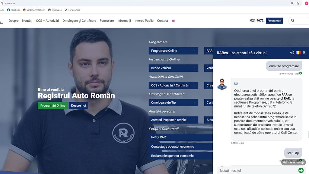De acum poți vorbi și cu RAReș, noul nostru coleg virtual care a fost creat pentru a răspunde întrebărilor voastre 24 de ore din 24 pe site-ul Registrului Auto Român (www.rarom.ro)”, transmite Departamentul de Comunicare al RAR.