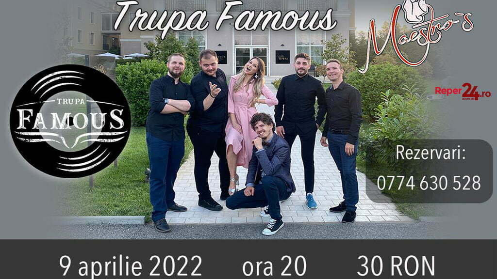 După ce aprilie a început în forță la Maestro’s cu reșițeanul Cristi Iakab și The Road Band, organizatorul seratelor Maestro’s s-a decis să meargă mai departe cu aplomb și încredere. De aceea, sâmbătă, pe 9 aprilie, în localul din centrul municipiului trupa ,,Famous” din Timișoara este invitată să întrețină atmosfera, cu melodii de excepție pentru un final fantastic de săptămână.