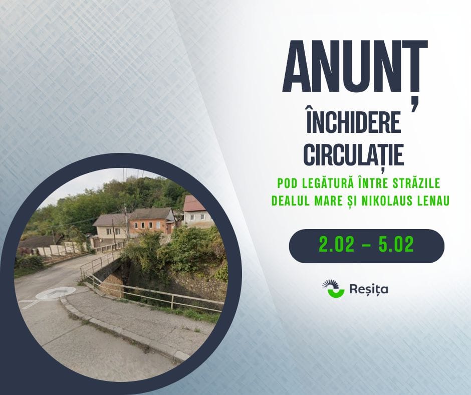 Conform anunțului oficial al Primăriei Reșița, circulația pe podul care conectează cele două străzi va fi închisă complet începând cu data de 2 februarie. Măsura va fi menținută pentru o perioadă de 4 zile, însă durata intervenției poate suferi modificări în funcție de condițiile meteorologice din acea perioadă.