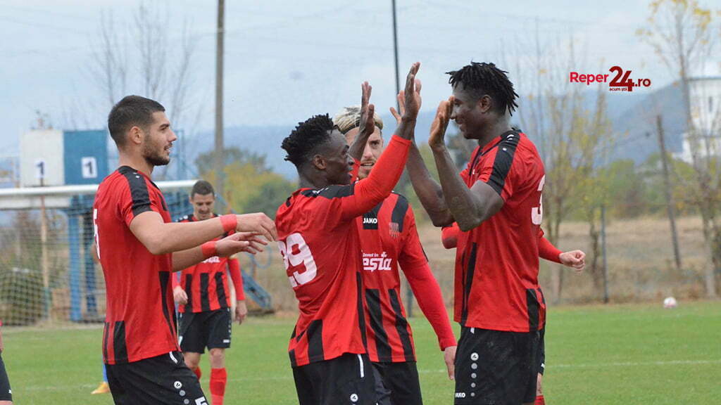 Începutul meciului a aparţinut echipei noastre, jucătorii reşiţeni intrând determinaţi în teren, pentru a tranşa cât mai repede meciul în favoarea lor. Deşi au ajuns destul de uşor în faţa carelui advers, rossonerii nu au reuşit să şi finalizeze ocaziile avute. Contrar cursului jocului, în minutul 30, la un contraatac, Dragoş SĂULESCU, fostul jucător al CSM-ului, a reuşit să deschidă scorul, cu un şut de la marginea careului mare, în vinclul porţii apărate de Sebastian MICU. Un gol care a dat speranţe gazdelor, până în minutul 34 când, după o recuperare în jumătatea proprie a lui Amir JORZA, mingea ajunge la Gakou ABOUBACAR care îl lansează pe golgeterul nostru, Ndiaye MEDIOP pe partea drepată, iar aceasta înscrie cu un şut plasat, lângă bara din dreapta. În minutul 38, jucătorii noştri trec în avantaj după o fază colectivă de atac, mingea trece pe la Cătălin ION, Amir JORZA, Ştefan BĂRBOIANU, Ion VASLUIAN care îl lansează în adâncime pe Sebastian VELCOTĂ, acesta pătrunde pe partea dreaptă şi îi pasează aceluiaşi Ndiaye MEDIOP care, de la aproximativ 22 m, şutează în vinclu. Presiunea rossonerilor la poarta adversă continuă, iar în minutul 42, Gakou ABOUBACAR speculează o greşeală a defensivei gazdelor, ducând scorul la 3 – 1, un scor mai apropiat de realitatea din teren. Gazdele nu renunţă la intenţiile ofensive, iar în minutul 44, reuşesc al doilea gol, prin Ionuţ GÎLCESCU, care a reluat în plasă centrarea trimisă de pe partea dreaptă, stabilind scorul pauzei.