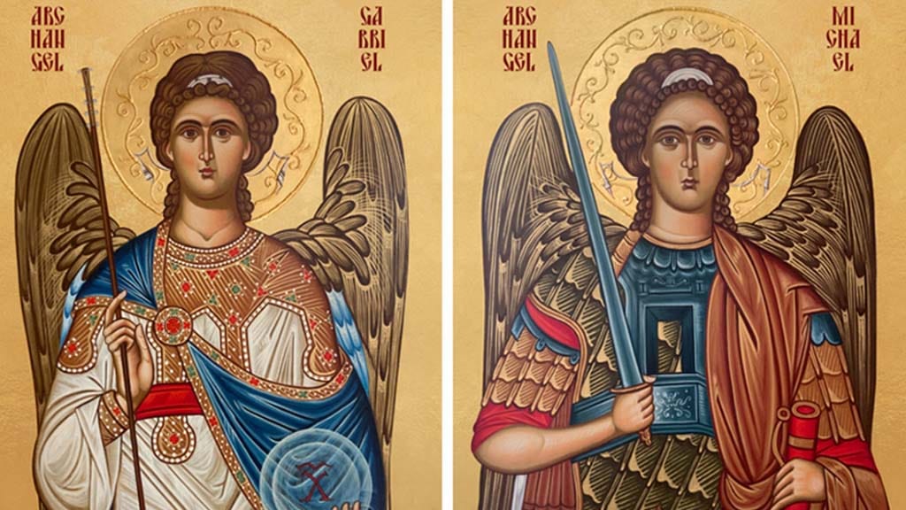 Arhanghelul Mihail este conducătorul oștilor cerești îngerești, iar Arhanghelul Gavril a fost trimis de Dumnezeu la Fecioara Maria să-i dea vestea că îl va naște pe Mântuitorul Iisus și tot el a dus drepților Ioachim și Ana vestea zămislirii Maicii Domnului.