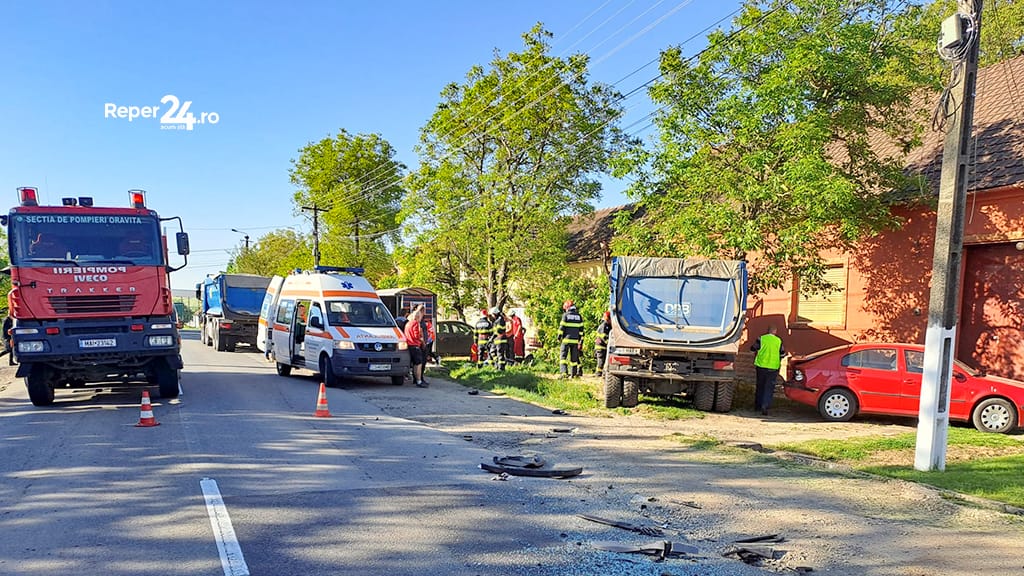 La fața locului, echipajele operative au intervenit cu o autospecială de stingere cu modul de descarcerare din cadrul Secției Oravița, o ambulanță SAJ și un echipaj IPJ.