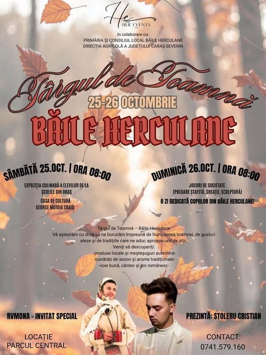 Băile Herculane se pregătește să îmbrace straie de sărbătoare în weekendul 25–26 octombrie, când în Parcul Central va avea loc mult așteptatul Târg de Toamnă, un eveniment dedicat tradițiilor, gusturilor locale și bucuriei de a fi împreună.