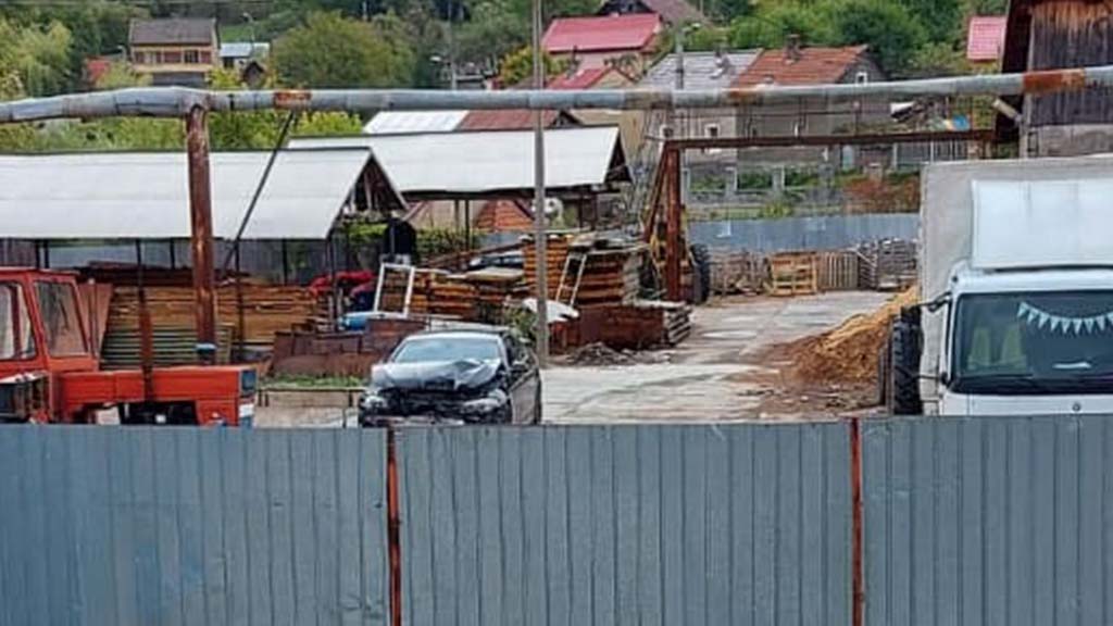 BMW-ul tamponat a fost ridicat si dus în curtea firmei primarului de pe strada Crișan (așa cum se vede și în fotografia pe care o aveți la dispoziție).